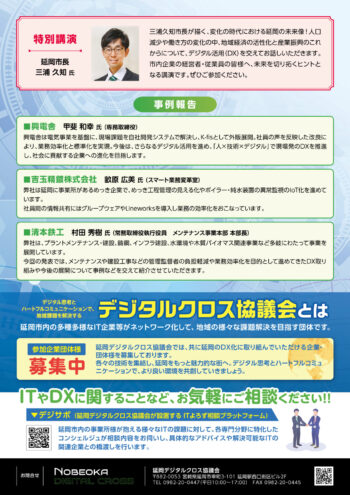 市長による特別講演をはじめ、企業のリアルなDX事例、地元デジタル企業による展示会を行います。